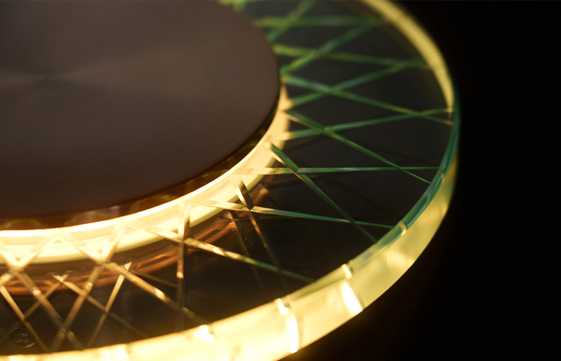 Here, we chose to use “Edokiriko” which is said to have originated in Edo (present-day Tokyo) in 1834, for our door handles. Edokiriko is known for its sharp angular cutting, which shines beautifully when illuminated by LED lights embedded in the push plate.